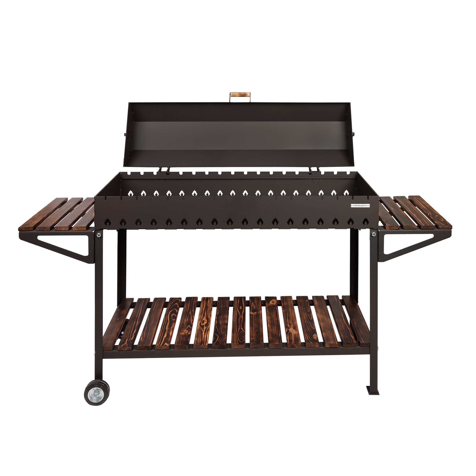 Stationary Charcoal Mangal on Wheels for 18 Skewers with Cover – 5 mm Steel!