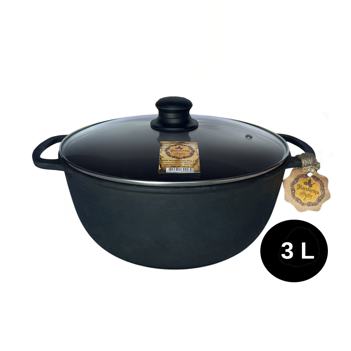 Żeliwny kociołek 3 L ze szklaną pokrywką – Tradycyjny smak w nowoczesnym wydaniu