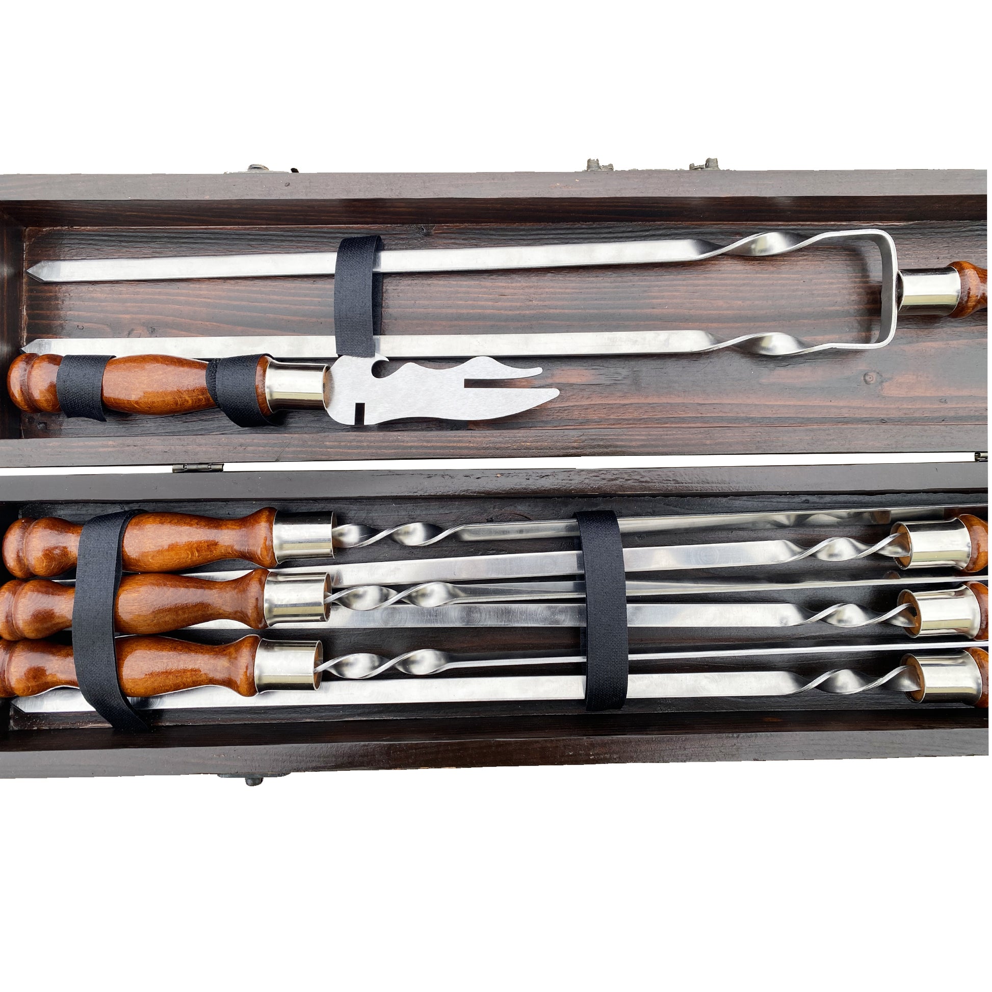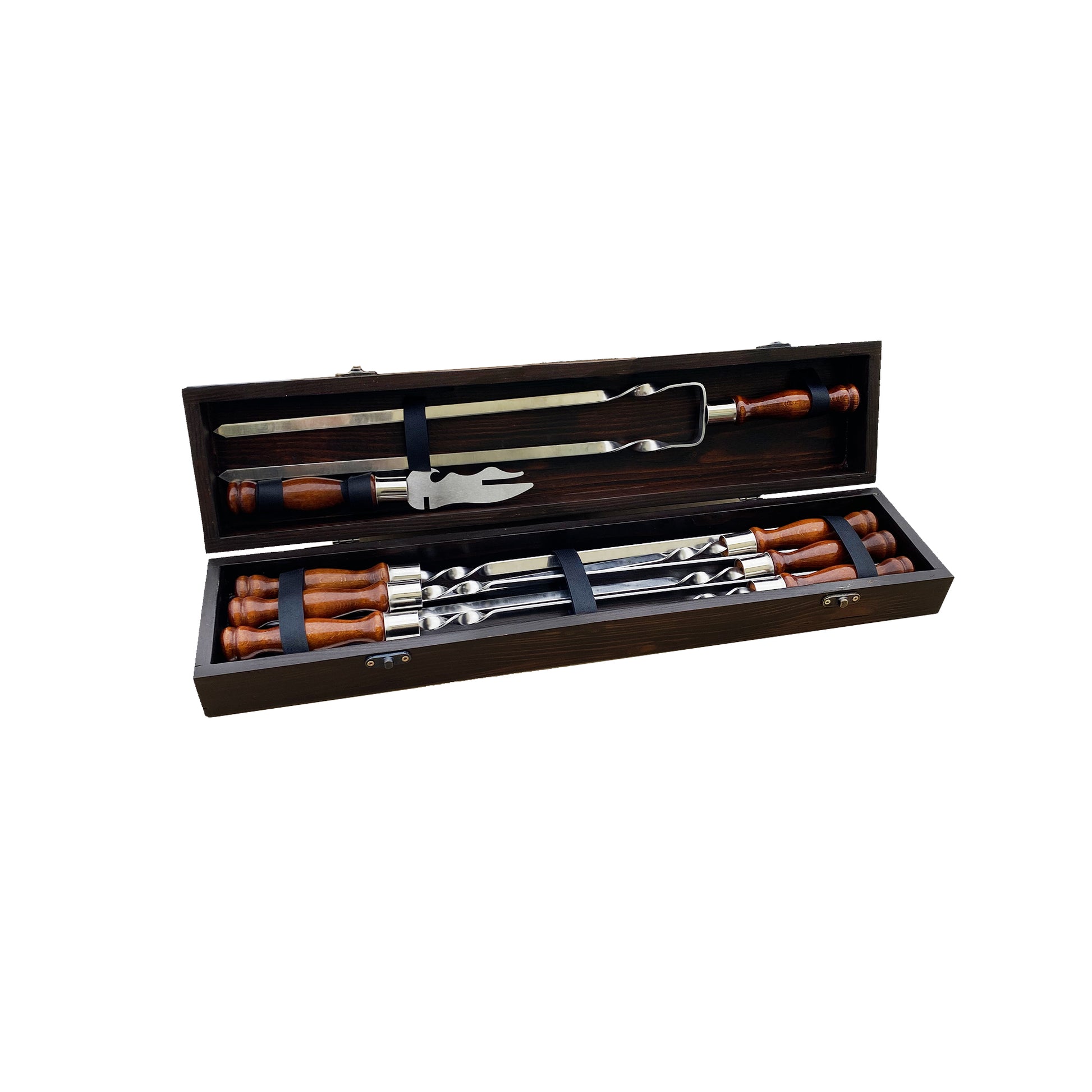 "Klasyczny" komplet szpikulców do grilla w drewnianej skrzynce.