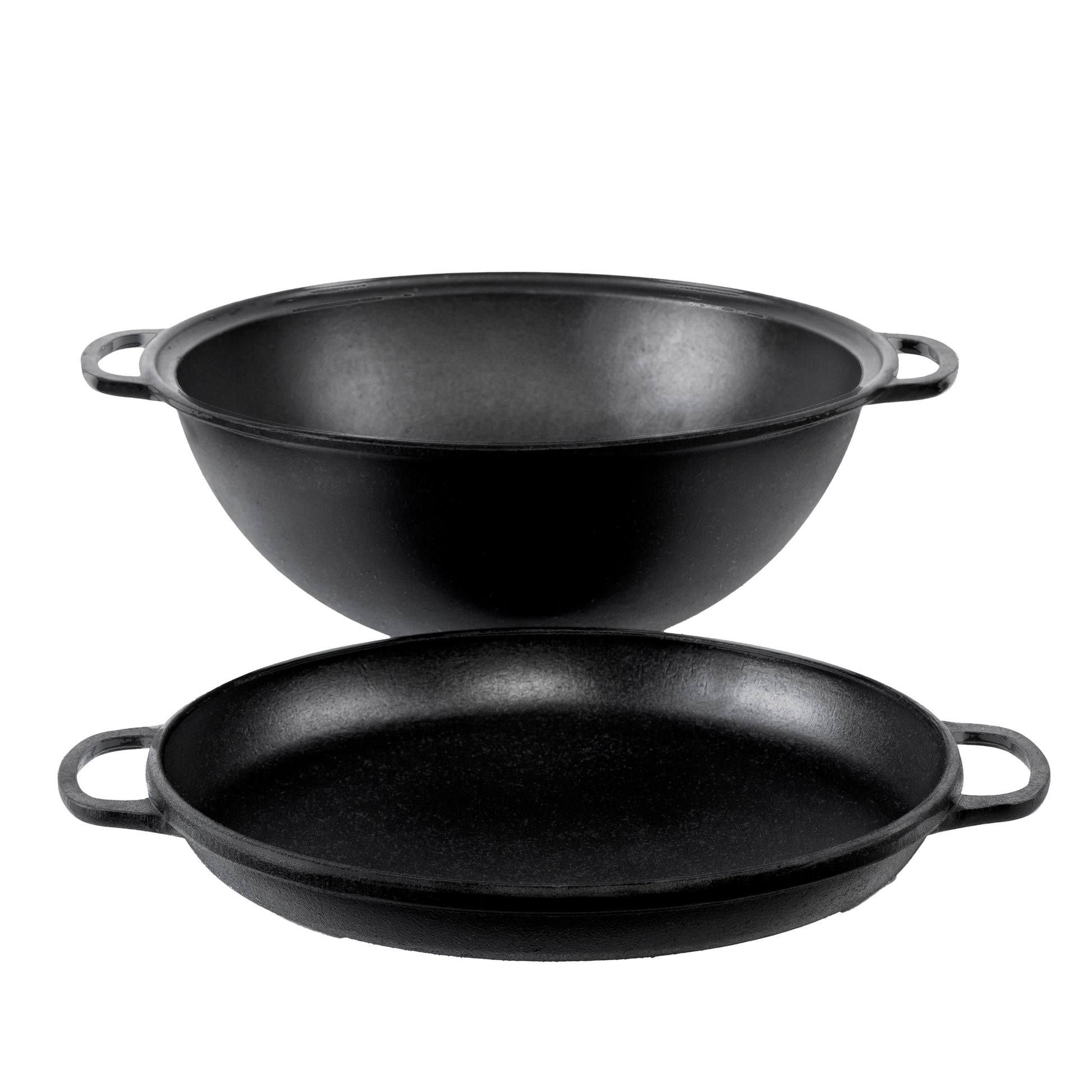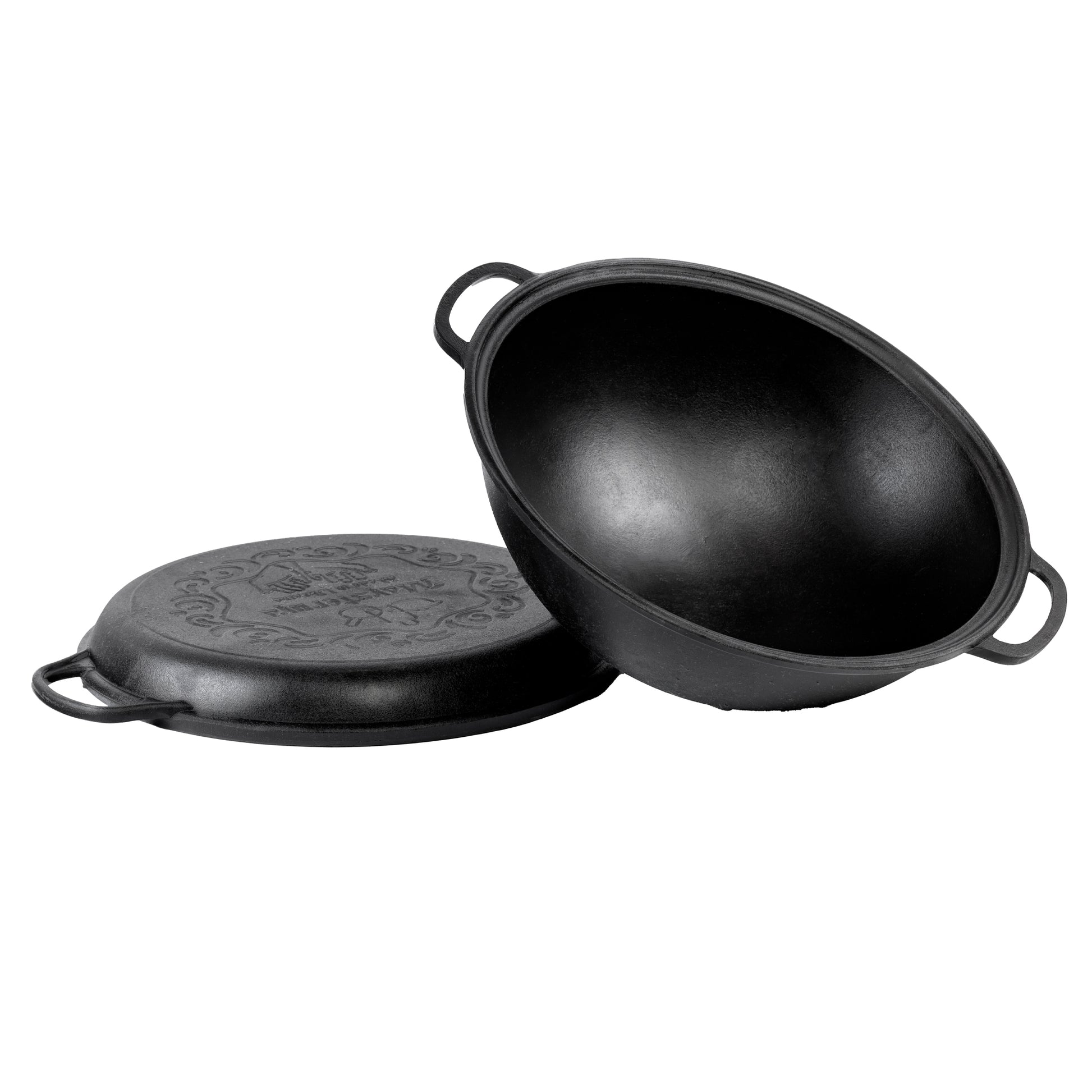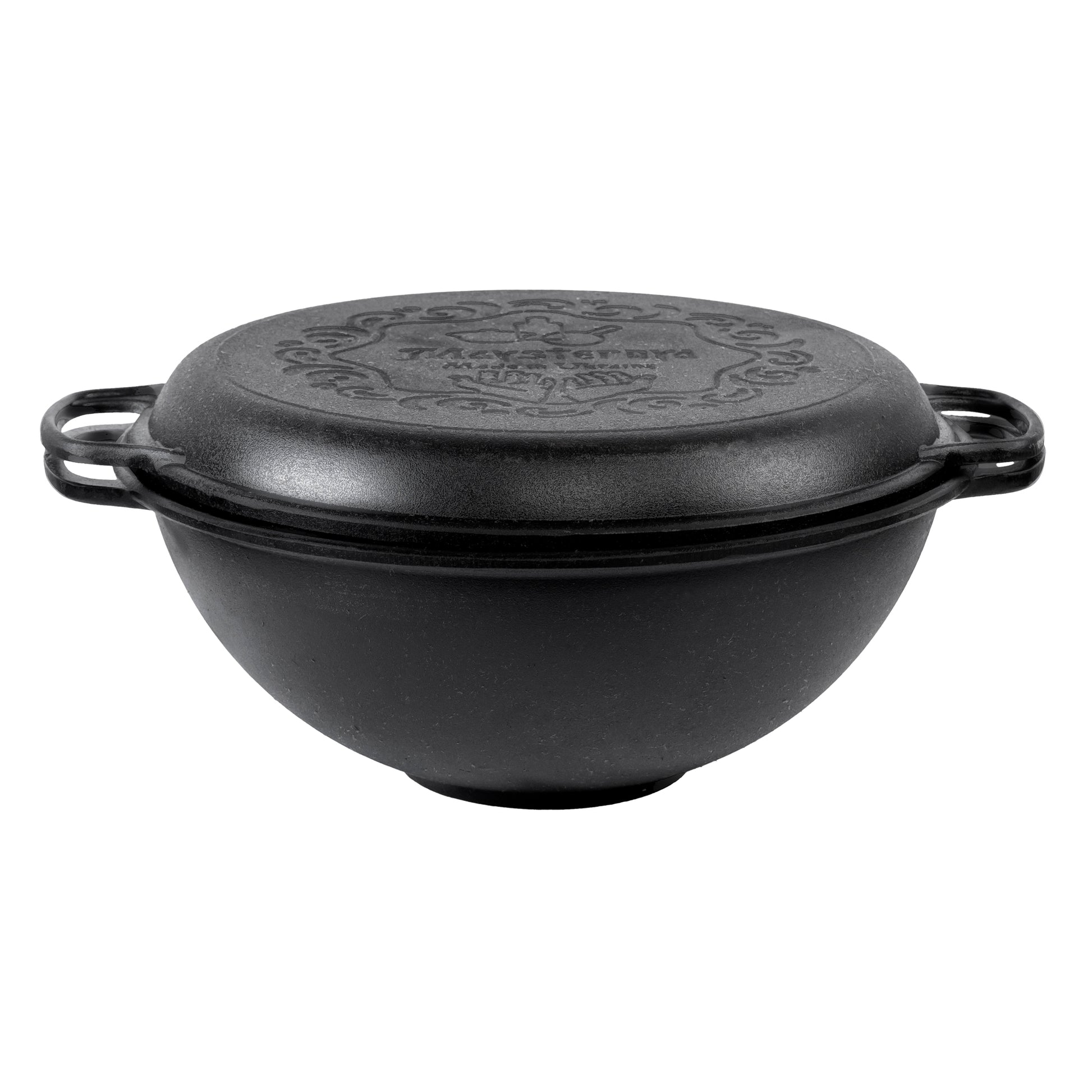 Откройте для себя традиционное искусство приготовления блюд с нашим уникальным чугунным казаном VOG объёмом 8 литров с функциональной крышкой-сковородой — идеально подходит для ароматного плова, наваристых рагу и супов, как на костре, так и на домашней кухне.